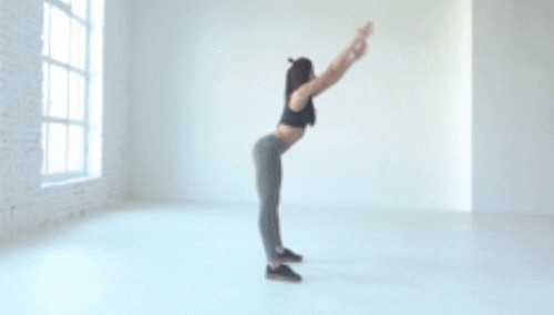 바닥에 서서 다리를 어깨너비보다 넓게 벌리고, 손을 머리 위로 뻗습니다. 그리고 상체를 앞으로 숙이면서 손을 바닥으로 내리세요. 그런 다음 엉덩이를 내리면서 스쿼트 동작을 진행합니다. 다시 손을 머리 위로 올리고, 원래 자세로 돌아오세요. 1분간 운동합니다.