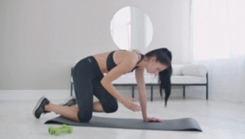 매트에 엎드려서 무릎을 바닥에 댑니다. 그리고 왼쪽 다리를 뒤로 뻗으면서 오른팔을 앞으로 뻗으세요. 그런 다음 복부를 향해 모았다가 다시 최대한 뻗어줍니다. 30초 반복 후, 반대편 팔과 다리로 동일하게 30초 진행하세요.