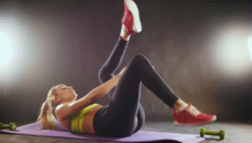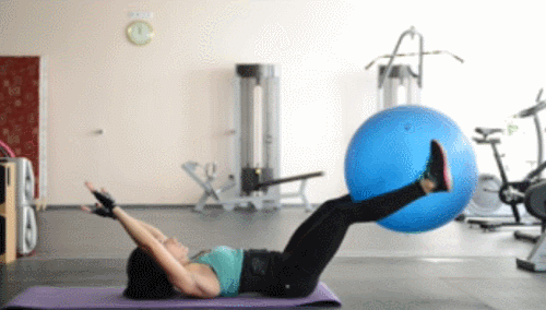짐볼을 이용하여 크런치 운동 효과를 높일 수 있는데요. 매트에 눕고, 다리 사이에 짐볼을 끼웁니다. 그리고 상체와 하체를 동시에 공중으로 들고, 다리의 짐볼을 손으로 이동하세요. 다시 상체와 하체를 들면서 손에 있는 짐볼을 다리로 이동하세요. 1분간 반복합니다.
