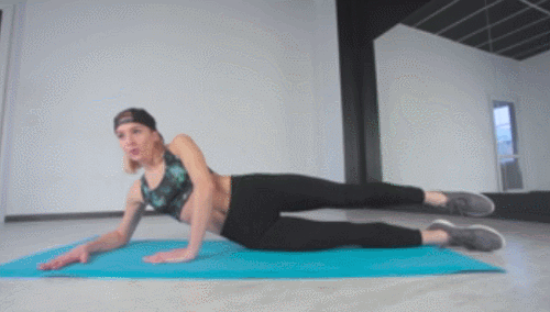 오른쪽 팔뚝을 매트에 대고 옆으로 누워서 시작합니다. 그리고 왼쪽 무릎을 구부리면서 앞으로 당겼다가 제자리로 돌아갑니다. 30초 동안 킥 동작을 진행하세요. 반대편으로 돌아서 눕고, 오른쪽 무릎을 당기는 동작을 30초 반복합니다.