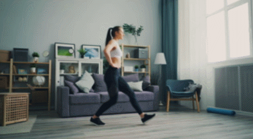 바닥에 서서 다리를 모으고, 손은 옆구리에 붙입니다. 그리고 시선은 정면을 향하세요. 그런 다음 왼쪽 다리를 앞으로 뻗으면서 런지 동작을 1회 하고, 원래 자세로 돌아옵니다. 이번에는 오른쪽 다리로 동일하게 런지 동작을 진행하세요. 1분간 운동합니다.