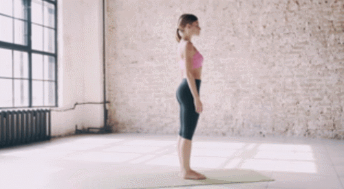 다리를 모으고 매트에 서서 시작하세요. 왼쪽 다리를 앞으로 내딛고, 무릎을 구부립니다. 오른쪽 다리는 무릎이 구부러지지 않도록 뒤로 뻗어주세요. 그리고 팔을 머리 위로 뻗으면서 몸을 늘여주세요. 30초 반복 후, 반대편 다리로 30초 반복합니다.