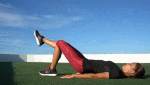 매트에 누워서 무릎을 당기고, 발을 바닥에 붙이세요. 그리고 왼쪽 다리를 오른쪽 허벅지 위에 올리세요. 그런 다음 엉덩이를 공중으로 들었다가 내리면서 30초 동안 운동합니다. 다리의 위치를 바꿔서 동일하게 30초 진행하세요.