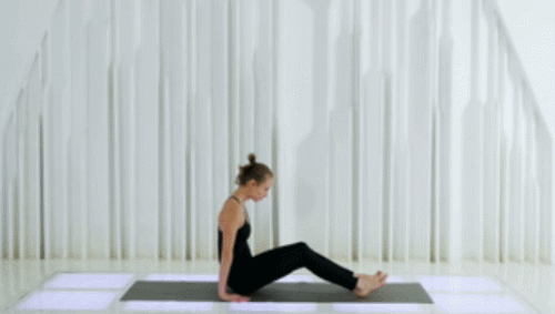 매트에 엉덩이를 대고 앉은 상태에서 다리를 앞으로 뻗어주세요. 그리고 손바닥을 바닥으로 밀면서 몸을 공중으로 띄워서 테이블 자세를 만드세요. 그런 다음 천천히 원래 자세로 돌아옵니다. 1분 동안 호흡을 유지하면서 반복하세요.