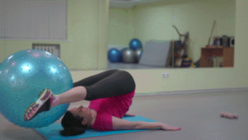 매트에 눕고, 다리 사이에 짐볼을 끼웁니다. 그리고 다리를 공중으로 천천히 들었다가 머리 뒤로 완전히 넘겨주세요. 원래 자세로 천천히 돌아오면 1회가 완료됩니다. 복부를 전체적으로 압박하면서 1분간 진행하세요.