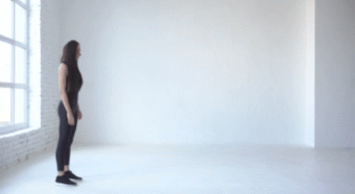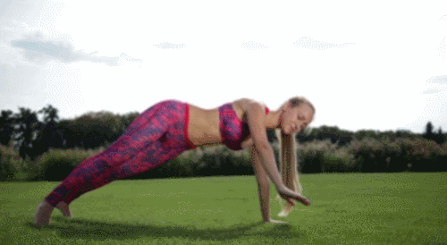 바닥에 서서 다리를 어깨너비로 벌립니다. 그리고 상체를 앞으로 숙이면서 손을 바닥에 짚으세요. 그런 다음 손바닥을 점차 앞으로 전진하면서 플랭크 자세를 만듭니다. 이번에는 다리를 손목 방향으로 점차 당기면서 몸을 구부리세요. 1분간 반복합니다.