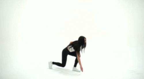 바닥에 서서 오른쪽 무릎을 공중으로 당기면서 왼손을 동시에 뻗어줍니다. 그리고 오른쪽 다리를 내리면서 리버스 런지 동작으로 연결합니다. 동시에 상체를 앞으로 숙여서 오른손을 바닥에 터치하세요. 30초 반복 후, 반대편 다리로 30초 반복합니다.