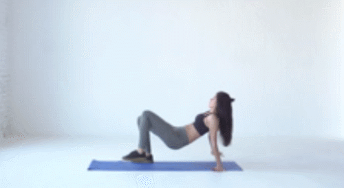 매트에 엉덩이를 대고 앉아서 다리를 펴줍니다. 그리고 손바닥을 바닥으로 밀면서 몸을 공중으로 띄우고, 테이블탑 자세를 만드세요. 그런 다음 오른발을 공중으로 들면서 동시에 왼손을 뻗어서 발을 터치합니다. 원래 자세로 돌아오면, 반대편 손과 발을 움직이세요. 1분간 반복합니다.