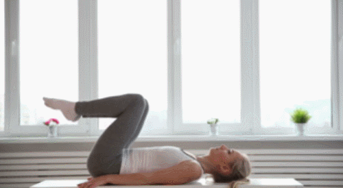 매트에 눕고, 다리를 공중으로 천천히 들어줍니다. 다리 사이가 벌어지지 않도록 힘을 주고, 머리 뒤로 완전히 넘겨주세요. 그리고 쟁기 자세를 유지한 상태에서 다리를 들었다가 내리는 동작을 추가합니다. 1분 동안 반복하세요.