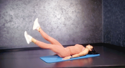 매트에 누운 상태에서 다리를 공중으로 띄웁니다. 그리고 무릎을 완전히 펴고, 다리를 뻗어주세요. 그런 다음 다리를 벌렸다가 오므리면서 교차하는 동작을 반복하면 되는데요. 1분 동안 진행하고, 허리가 뜨지 않도록 복부를 눌러줍니다.