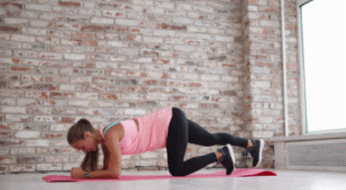 매트에 엎드린 상태에서 네발기기 자세를 만듭니다. 그리고 팔뚝으로 지탱하면 되는데요. 오른발을 공중으로 띄워서 완전히 뻗어주세요. 다리를 내렸다가 들면서 30초 운동합니다. 반대편 다리로 동일하게 30초 진행하세요.