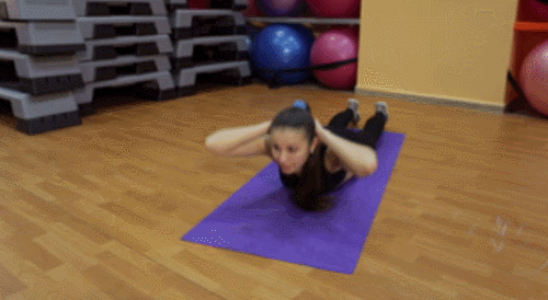 매트에 배를 대고 엎드려서 준비합니다. 손은 머리 뒤로 옮겨서 깍지 껴 잡으세요. 그리고 상체를 들었다가 내리는 동작을 1분간 반복하면 되는데요. 하체는 들리지 않도록 자세를 유지하고, 허리가 아닌 등 근육을 사용하도록 합니다.