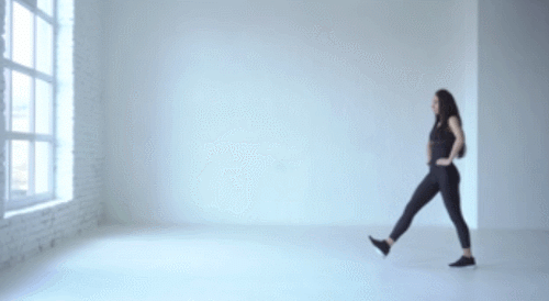 바닥에 서서 옆구리에 손을 옮깁니다. 그리고 왼쪽 다리를 앞으로 뻗으면서 런지 동작으로 연결하세요. 그런 다음 오른쪽 다리를 앞으로 당겨서 뻗고, 런지 동작을 진행합니다. 앞으로 걸어가면서 런지 운동을 1분간 반복하세요.