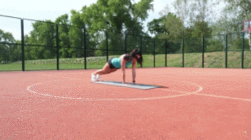 바닥에 엎드려서 팔굽혀펴기 자세를 준비하세요. 그리고 살짝 점프하면서 팔을 어깨너비보다 넓게 벌리고, 다리도 충분히 벌립니다. 그런 다음 팔꿈치를 구부리면서 팔굽혀펴기를 1회 하고, 돌아오면서 다시 점프하여 원래 자세로 돌아오세요. 1분간 반복합니다.