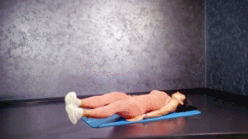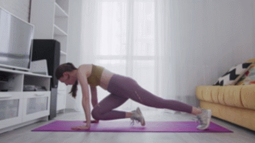 매트에 바닥에 엎드린 상태로 시작하세요. 그리고 오른쪽 무릎을 왼쪽 팔꿈치 방향으로 최대한 당겨줍니다. 그런 다음 원래 자세로 돌아오면, 반대편 다리를 동일하게 당겨주세요. 1분 동안 번갈아 움직이면 되는데요. 상체를 안정적으로 유지한 상태에서 최대한 당겨줍니다.