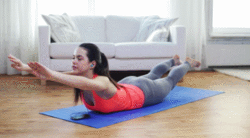 배를 매트에 대고 엎드려서 준비하세요. 그리고 팔을 앞으로 뻗습니다. 그런 다음 상체와 하체를 동시에 공중으로 들어주세요. 슈퍼맨 자세로 버텼다가 원래 자세로 돌아옵니다. 1분 동안 반복하면서 진행하세요.
