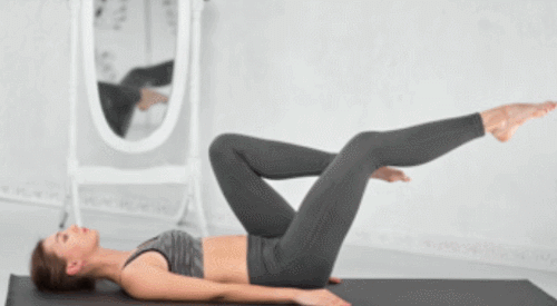 매트에 누운 상태로 시작합니다. 팔을 바닥에 대고, 다리는 공중으로 들어줍니다. 그리고 왼쪽 무릎을 당겼다가 뻗으면서 오른쪽 무릎을 당겨줍니다. 다리를 번갈아 움직이면 되는데요. 자전거를 타는 것처럼 자연스럽게 진행해도 무방합니다. 1분간 운동하세요.