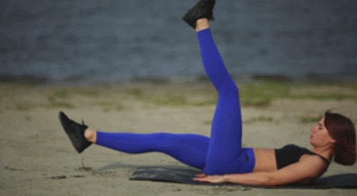 매트에 누운 상태로 상체를 약간 일으킵니다. 그리고 다리를 공중으로 띄우세요. 그런 다음 오른쪽 다리를 들었다가 내리면서 왼쪽 다리를 들어주면 되는데요. 상체를 든 상태로 진행하면, 복부 전체를 공략할 수 있습니다. 1분간 반복하세요.