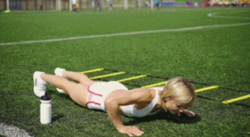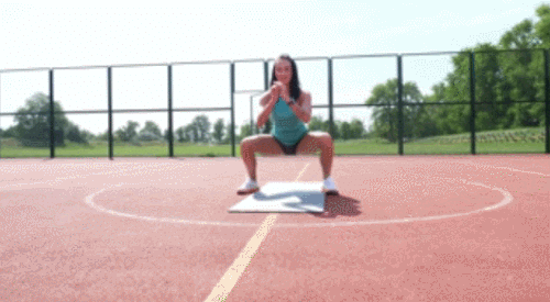 다리를 넓게 벌리고 서서 스쿼트 자세를 만듭니다. 그리고 손을 바닥에 짚으면서 다리를 점프하여 플랭크 자세를 만드세요. 그런 다음 하체부터 바닥에 닿으면서 상체를 완전히 붙입니다. 다시 플랭크 자세로 돌아오면서 다리를 점프하여 상체를 일으키세요. 1분 동안 반복합니다.