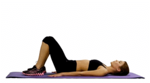 매트에 누워서 무릎을 세우고, 발을 바닥에 붙입니다. 그리고 팔을 바닥으로 누르면서 엉덩이를 공중으로 띄웁니다. 그런 다음 브릿지 자세를 유지한 상태에서 엉덩이를 내렸다가 드는 업다운 동작을 반복하세요. 1분간 진행합니다.