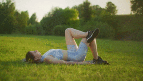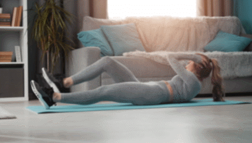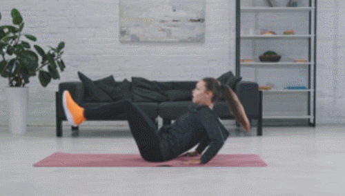 매트에 엉덩이를 대고 앉은 상태에서 손바닥을 바닥에 붙입니다. 그리고 상체를 뒤로 기울이면서 다리를 공중으로 뻗어주세요. 그런 다음 복부를 중심으로 상체와 하체를 당겼다가 원래 자세로 돌아옵니다. 1분 동안 속도를 조절하면서 운동하세요.