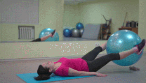 매트에 눕고, 다리 사이에 짐볼을 끼우세요. 그리고 짐볼이 떨어지지 않도록 자세를 유지합니다. 그런 다음 다리를 천천히 들어서 머리 뒤로 짐볼을 완전히 넘겨줍니다. 원래 자세로 천천히 돌아오세요. 1분 동안 레그레이즈 변형 동작을 진행합니다. 100개를 목표로 하세요.