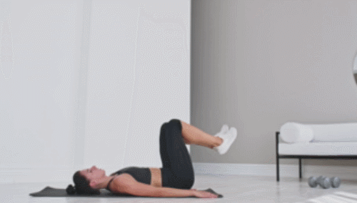 매트에 등을 대고 누운 상태에서 시작하세요. 그리고 다리를 공중으로 띄웁니다. 그런 다음 왼쪽 다리를 바닥으로 내렸다가 들어주면서 오른쪽 다리를 바닥으로 내려주세요. 1분 동안 다리를 위아래로 교차합니다. 하루 100개를 채우세요.