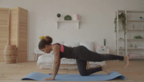 매트에 네발기기 자세로 엎드려서 준비하세요. 그리고 왼쪽 다리를 뒤로 뻗어줍니다. 그런 다음 다리를 공중으로 들었다가 내리는 동작을 30초 동안 진행하세요. 이번에는 오른쪽 다리를 뒤로 뻗고, 동일하게 30초 반복합니다.
