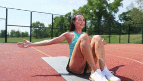 매트에 엉덩이를 대고 앉아서 다리를 당겨줍니다. 그리고 팔을 옆으로 펼치세요. 그런 다음 상체를 뒤로 누우면서 등을 바닥에 대는 동시에 다리를 공중으로 들어주세요. 원래 자세로 돌아오면, 1회가 완료됩니다. 1분 동안 진행하세요.