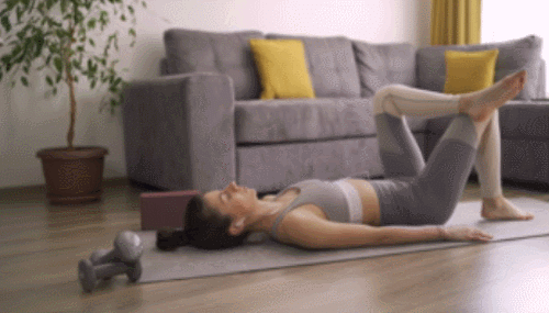매트에 누운 상태에서 시작하세요. 왼쪽 다리를 오른쪽 허벅지 위에 올리고, 다리 사이의 공간으로 손을 넣어줍니다. 그리고 상체 방향으로 당기거나 좌우로 움직이세요. 30초 운동 후, 다리의 위치를 바꿔서 30초 반복합니다.