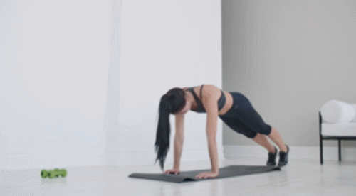 손을 바닥에 짚으면서 다리를 점프하여 플랭크 자세를 만드세요. 그리고 다시 다리를 점프하여 손목 방향으로 당깁니다. 그런 다음 일어서면서 점프하였다가 착지하면서 반복합니다. 1분 동안 계속 진행하세요.