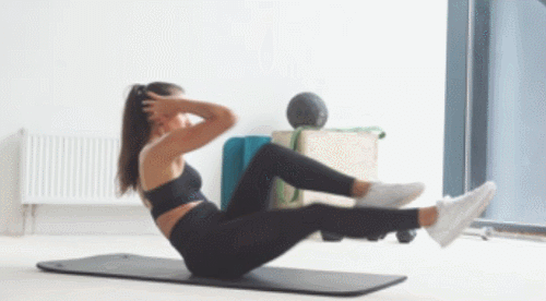 매트에 엉덩이를 대고 앉은 상태에서 손바닥을 붙이고, 상체를 뒤로 눕습니다. 그리고 다리를 공중으로 띄우고, 몸을 최대한 펴주세요. 그런 다음 복부를 중심으로 상체와 하체를 최대한 당겼다가 펴는 동작을 1분 동안 반복하세요.