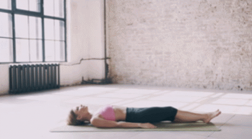 매트에 누워서 편안한 자세로 시작합니다. 그리고 오른쪽 무릎을 당겨서 손으로 정강이를 눌러줍니다. 최대한 스트레칭을 진행하고, 왼쪽 무릎을 당기는 동작으로 연결하세요. 다리를 번갈아 움직이면서 1분 동안 진행하세요.