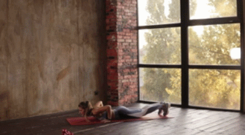 손을 바닥에 짚으면서 다리를 점프하여 엎드리세요. 그리고 몸 전체를 바닥으로 내리고, 일어서면서 다리를 점프하여 당겨줍니다. 그런 다음 상체를 일으키면서 다시 점프하고, 동시에 팔을 머리 위로 뻗습니다. 1분간 계속 반복하세요.