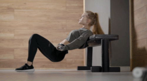 소파나 벤치에 등을 대고 누워서 시작하세요. 발을 바닥에 대고, 무릎은 90도 각도를 유지하세요. 그리고 아령이나 바를 골반에 대고, 무게를 추가합니다. 그런 다음 엉덩이를 바닥으로 내렸다가 들면서 1분 동안 운동합니다.