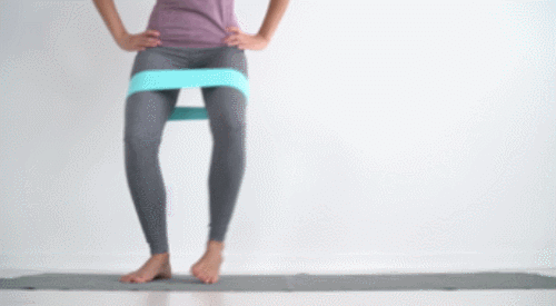 허벅지 사이에 탄력 밴드를 끼운 후, 바닥에 서서 준비하세요. 손은 옆구리에 가져가고, 왼쪽 다리를 왼쪽으로 이동하면서 운동합니다. 무릎은 살짝 구부리고, 좌우로 움직이면서 1분 동안 진행하세요. 다리 범위를 바꿔가며 운동할 수 있습니다. 100개를 나눠서 진행하세요.