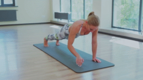 매트에 엎드린 상태에서 플랭크 기본자세를 잡습니다. 그리고 오른쪽 팔꿈치와 왼쪽 팔꿈치를 구부리면서 팔꿈치 플랭크 자세로 전환하세요. 다시 팔꿈치를 펴고, 원래 자세로 돌아오면, 1회가 완료됩니다. 1분 동안 진행하세요.