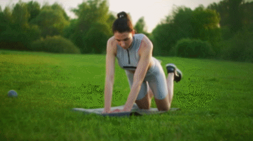매트에 네발기기 자세로 엎드려서 준비합니다. 그리고 오른팔을 앞으로 뻗으면서 동시에 왼발을 뒤로 뻗으세요. 원래 자세로 돌아오면, 왼팔과 오른발을 뻗는 동작으로 연결하세요. 1분 동안 팔과 다리를 움직이면서 운동합니다.