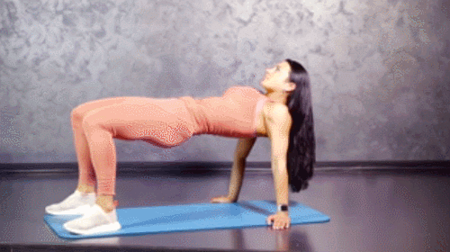 매트에 누운 상태에서 무릎을 세우면서 발을 붙입니다. 그리고 엉덩이를 공중으로 띄우면서 몸을 사선으로 만들고, 브릿지 자세를 유지합니다. 자세를 유지하며 최대한 버텼다가 원래 자세로 돌아오세요. 엉덩이를 들었다가 내리면서 1분간 운동합니다.