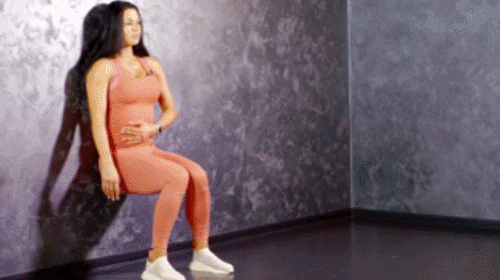 벽 앞에 서서 시작하세요. 벽에 등을 기대고, 무릎을 구부립니다. 허벅지를 바닥과 평행하도록 만들고, 시선은 정면을 응시합니다. 1분 동안 최대한 버티세요. 다리를 벌렸다가 오므리는 동작을 추가할 수 있습니다.