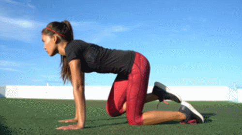 매트에 네발기기 자세로 엎드려서 시작하세요. 그리고 오른발을 뒤로 뻗는 동작을 30초 반복합니다. 이번에는 왼발을 뒤로 뻗는 동작으로 30초 진행하세요. 1분씩 나눠서 하루 100개를 목표로 운동합니다.