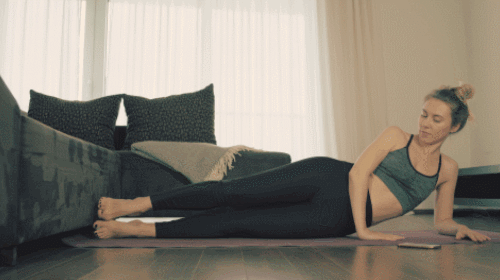 왼쪽 팔뚝을 대고 옆으로 누워서 준비하세요. 왼쪽 다리와 오른손은 바닥에 붙입니다. 그리고 오른쪽 다리를 공중으로 들었다가 내리면서 레그레이즈 동작을 30초 진행하세요. 반대편으로 돌아서 눕고, 왼쪽 다리를 드는 동작으로 30초 반복하세요. 하루 100개를 채웁니다.