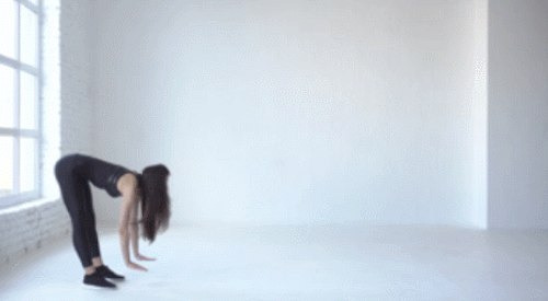 바닥에 서서 어깨너비로 다리를 벌리고 시작합니다. 상체를 앞으로 숙이고, 손을 바닥에 짚으면서 앞으로 움직이세요. 플랭크 자세를 만들면, 다리를 당기면서 원래 자세로 돌아옵니다. 1분 동안 움직이면서 반복하세요.