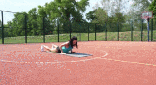 매트에 엎드려서 플랭크 기본자세를 만듭니다. 그리고 오른손을 오른쪽으로 이동하면서 움직이고, 왼손을 왼쪽으로 이동하면서 반복합니다. 다리는 움직이지 않은 상태로 고정하고, 팔을 좌우로 움직이면서 1분간 운동하세요.