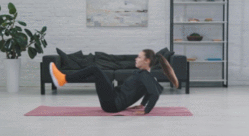 매트에 엉덩이를 대고 앉은 후, 손을 바닥에 대고 몸을 지탱합니다. 그리고 상체를 뒤로 젖히면서 다리를 공중으로 뻗어주세요. 복부를 향해 상체와 하체를 당겼다가 다시 펴주면, 1회가 완료됩니다. 1분 동안 진행하세요.