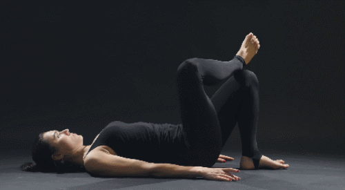 매트에 누운 후, 무릎을 당겨서 세웁니다. 그리고 오른쪽 다리를 왼쪽 허벅지 위에 걸치세요. 그런 다음 엉덩이를 들었다가 내리면서 업다운 동작을 30초 동안 진행합니다. 이번에는 다리의 위치를 바꿔서 30초 반복하세요. 100개를 채웁니다.
