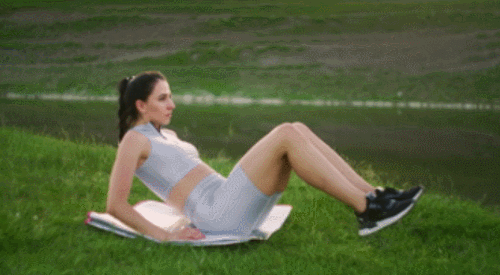 매트에 엉덩이를 대고 앉아서 시작합니다. 팔뚝을 바닥에 대고, 상체를 뒤로 젖히면서 다리를 앞으로 뻗으세요. 다시 상체와 하체를 복부로 당겼다가 펴줍니다. 1분 동안 몸을 접었다가 펴는 동작을 진행하세요. 100개를 목표로 합니다.