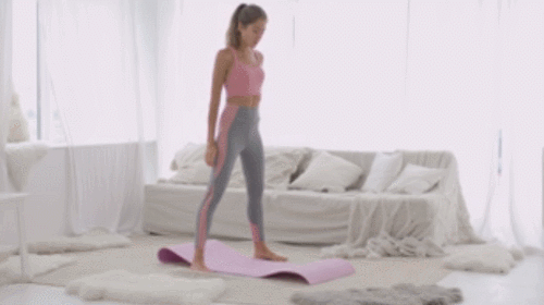 매트에 서서 시작하세요. 손을 가슴 앞으로 모으고, 오른발로 지탱하면서 왼쪽 다리를 뒤로 뻗어줍니다. 동시에 상체를 앞으로 숙여서 T자 모양을 만드세요. 30초 반복 후, 반대편 다리로 동일하게 30초 반복합니다.