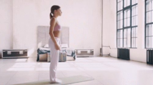 매트에 선 상태에서 무릎을 구부리고, 엉덩이를 바닥으로 낮추세요. 동시에 팔을 앞으로 뻗습니다. 상체는 구부러지지 않도록 하고, 시선은 정면을 유지하면서 최대한 버팁니다. 1분 동안 진행하세요.