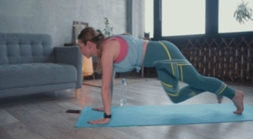 매트에 엎드려서 플랭크 자세로 시작하세요. 그리고 다리를 번갈아 당기면 되는데요. 왼쪽 다리를 당겼다가 오른쪽 다리를 당겨줍니다. 시선은 바닥을 향하거나 정면을 봅니다. 1분 동안 속도를 조절하면서 계속하세요.